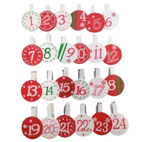 Adventi számos facsipesz szett. Díszítő elemként használhatod adventi naptár készítéséhez.