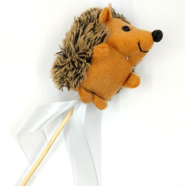 Csokorba tűzhető plüss süni barna színben, fehér szalaggal, vastag pálcán. Készíts ballagási emléket, tűzd csokorba ezt a kedves figurát!