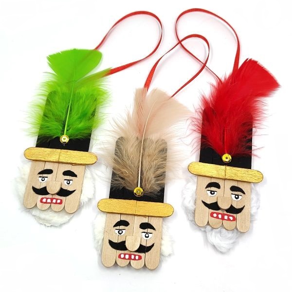 Diótörő karácsonyi dísz DIY alkotócsomag tartalma: spatula, madártoll, flitter, szőrme, vékony szatén szalag, vékony ecset és festékek (fekete, fehér, piros, arany). Készítsetek a gyerekekkel közösen saját karácsonyfadíszt, vagy ajándékot Szeretteiteknek!