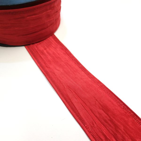 Drótos taft szalag piros színben, különböző dekorációk és virágkötészeti alkotások kiváló, sokrétűen felhasználható kelléke. Kopogtatók, koszorúk, asztaldíszek készítéséhez tökéletes választás.