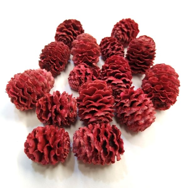 Fenyőtoboz kerekded piros színben, egyike a rengeteg virágkötészeti termésünknek. Ünnepi kopogtatók, adventi koszorúk, karácsonyi asztaldíszek, vagy lakásdekoráció készítéséhez tökéletes választás.