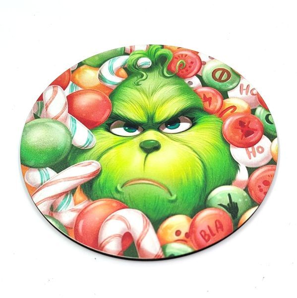Grincs cukorkákkal festett kör fatábla, melyet használhatsz ünnepi dekorációk díszítéséhez, vagy készíthetsz belőle hűtőmágnest, egyedi ajándékkísérőt, díszítheted vele karácsonyfádat!