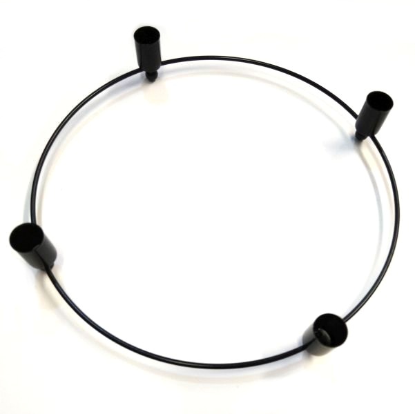 Gyertyatartó karika fém fekete 30 x 4,5 cm méretben. Felhasználható karácsonyi asztali dekorációk készítéséhez, az ünnepi asztal díszeként, adventi koszorúként.