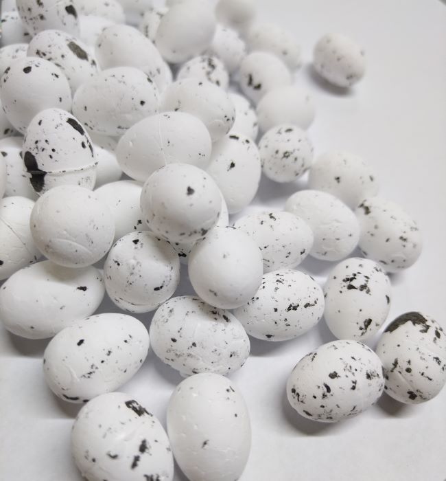 Hungarocell fürjtojás fekete-fehér mini, melyet díszítő elemként használhatsz tavaszi, húsvéti asztaldíszek, kopogtatók, lakásdekorációk készítéséhez.