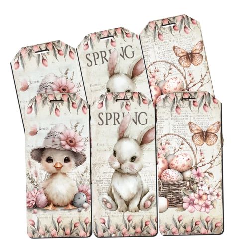 Húsvéti biléták 5,7 cm akasztó lyukkal 6 db, mely díszítő elemként használható tavaszi és húsvéti kopogtatók, koszorúk, asztaldíszek dekorálásához. Emellett számtalan kellékünk közül tudsz válogatni, melyekkel elkészítheted saját kopogtatódat, koszorúdat, asztaldíszedet.