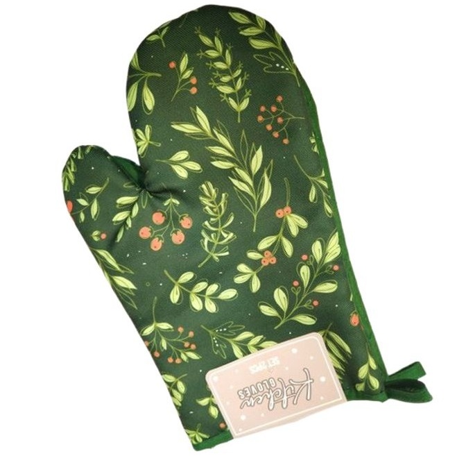 Karácsonyi konyhai kesztyű zöld fagyöngy mintás. Tökéletes ajándék Szeretteidnek!