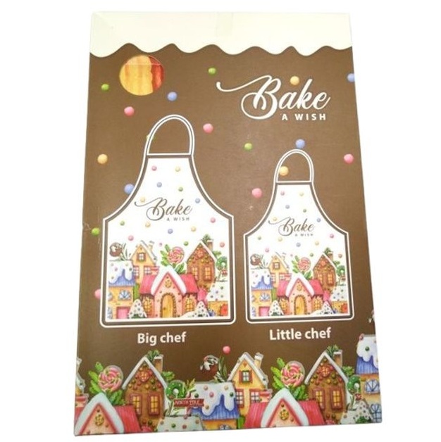 Karácsonyi kötényszett „Mézeskalács házak” felnőtt-gyerek 2 db-os szett. Tökéletes ajándék Szeretteidnek!