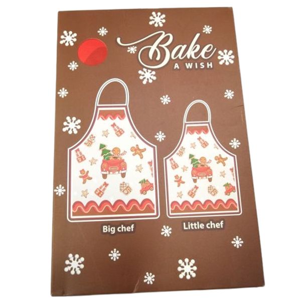 Karácsonyi kötényszett „Mézi piros autóban” felnőtt-gyerek 2 db-os szett. Tökéletes ajándék Szeretteidnek!