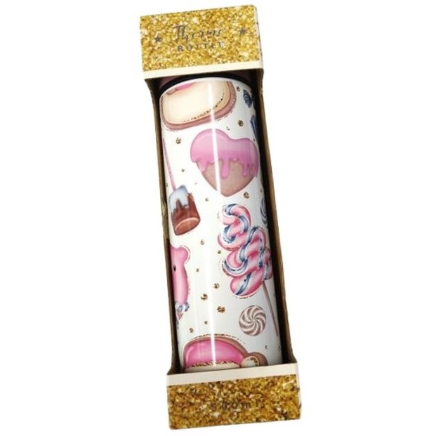 Karácsonyi mintás hőtartó termosz „cukorkák és sütik” dekorral, 500 ml űrtartalmú. Tökéletes ajándék Szeretteidnek!