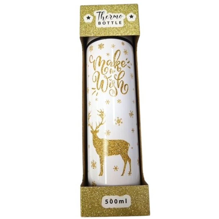Karácsonyi mintás hőtartó termosz „szarvas” dekorral, 500 ml űrtartalmú. Tökéletes ajándék Szeretteidnek!