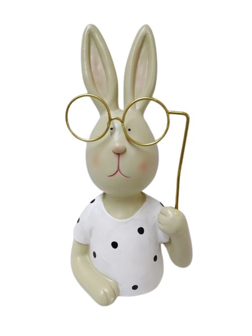 Kerámia nyuszi szemüveges 21 cm. Díszítheted vele tavaszi, húsvéti kopogtatódat, asztaldíszedet, használhatod önmagában lakásdekorációként, de ajándéknak is tökéletes! Emellett számtalan kellékünk közül tudsz válogatni, melyekkel elkészítheted saját kopogtatódat, koszorúdat vagy asztaldíszedet.