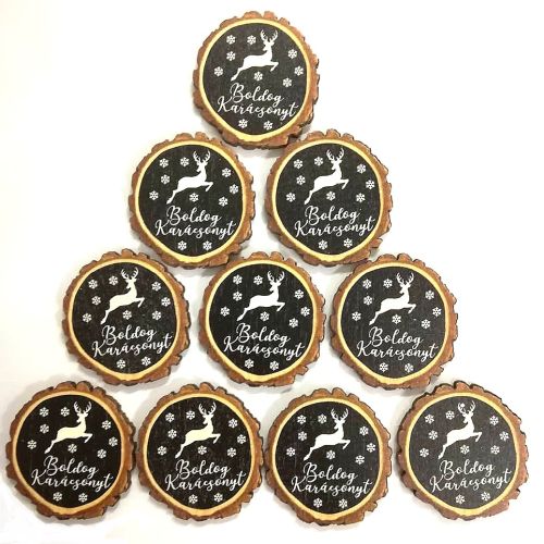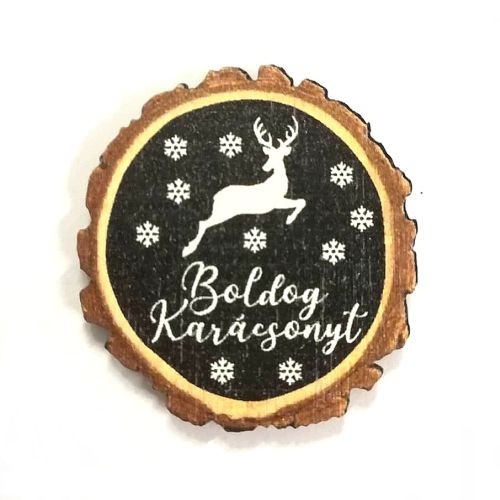 Lézervágott korong Boldog karácsonyt ugró szarvas 4 cm méretben. Használható díszítő elemként adventi és karácsonyi kopogtatók, koszorúk, asztaldíszek dekorálásához. Emellett számtalan kellékünk közül tudsz válogatni, melyekkel elkészítheted saját kopogtatódat, koszorúdat, asztaldíszedet. Készíthetsz belőle hűtőmágnest vagy egyedi ajándékkísérőt is!