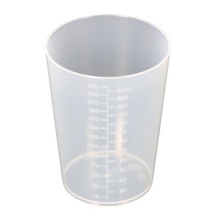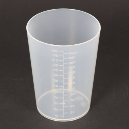 Mérőpohár 250 ml. Használhatjuk gyanta kiméréséhez, a komponensek összedolgozásához, festékek homogenizálására és összekeverésére is.