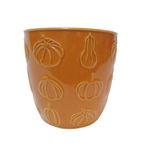 Őszi kerámia kaspó tök mintával 14 cm. Ültethetsz bele virágot, vagy használhatod asztaldíszek készítéséhez művirágokkal, termésekkel és az évszaknak megfelelő dekor kellékekkel díszítve.