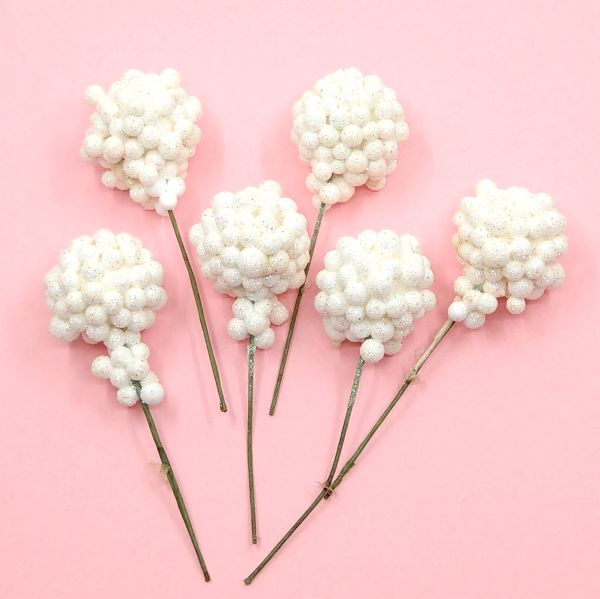 Polifoam szeder drótszáron fehér csillámos 6 db