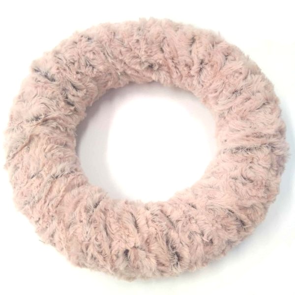 Rózsaszínes körkörös mintás szőrmével bevont koszorú alap karácsonyi kopogtatókhoz, adventi koszorúkhoz. Díszíthető bármilyen dekor kellékkel.