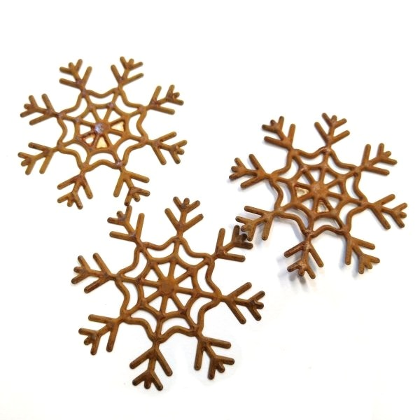 Rusztikus hópehely dísz rozsdás fém 6 cm méretben. Hozd közelebb magadhoz az idő patinájának szépségét – válaszd a rozsdás fém karácsonyfadíszeket, hogy otthonod különleges hangulatba öltözhessen! Számtalan kellékünk közül tudsz válogatni, melyekkel elkészítheted saját kopogtatódat, koszorúdat, asztaldíszedet, díszítheted karácsonyfádat.