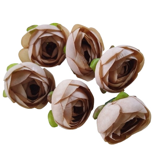 Selyem boglárka fej vintage latte barna színben. A virágfej mérete: kb. 5 cm. Kiszerelés 6 db.