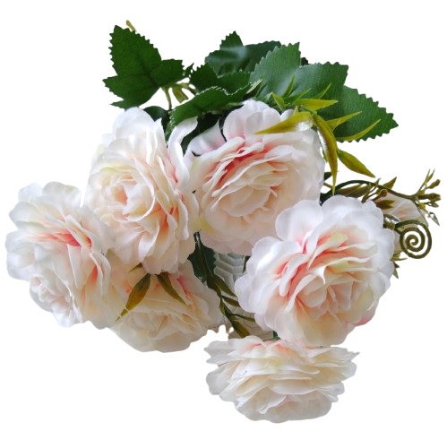 Selyem fodros rózsa csokor ekrü-rózsaszín 5 szálas