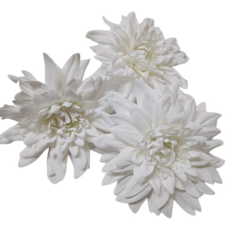 Selyem kaktusz dália fej fehér színben. Gyere, nézz szét nálunk, milyen alapanyag szükséges még, hogy elkészítsd álmaid rózsadobozát, asztaldíszét, kopogtatóját: