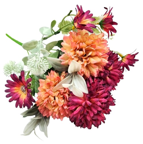 Selyem krizantém csokor gömbivel vintage rubin-rózsaszín 7 szálas