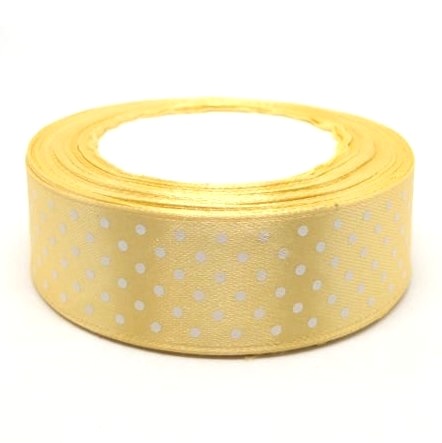 Szatén szalag pöttyös krémes arany 25 mm teljes tekercs
