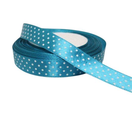 Szatén szalag pöttyös tengerkék színben, különböző dekorációk és virágkötészeti alkotások kiváló, sokrétűen felhasználható kelléke. Kopogtatók, koszorúk, asztaldíszek készítéséhez tökéletes választás.