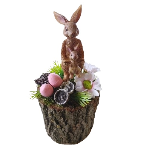 Tavaszi asztaldísz fakérgen nyuszikkal- KÉSZ dekoráció. Tavaszi lakásdekoráció az ünnepi hangulat megteremtéséhez! Díszítsd vele otthonod, vagy ajándékozd Szeretteidnek! Tetszés szerint akár tovább dekorálhatod!