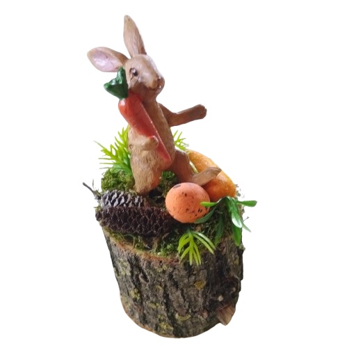 Tavaszi asztaldísz fakérgen nyuszival és répával- KÉSZ dekoráció. Tavaszi lakásdekoráció az ünnepi hangulat megteremtéséhez! Díszítsd vele otthonod, vagy ajándékozd Szeretteidnek! Tetszés szerint akár tovább dekorálhatod!
